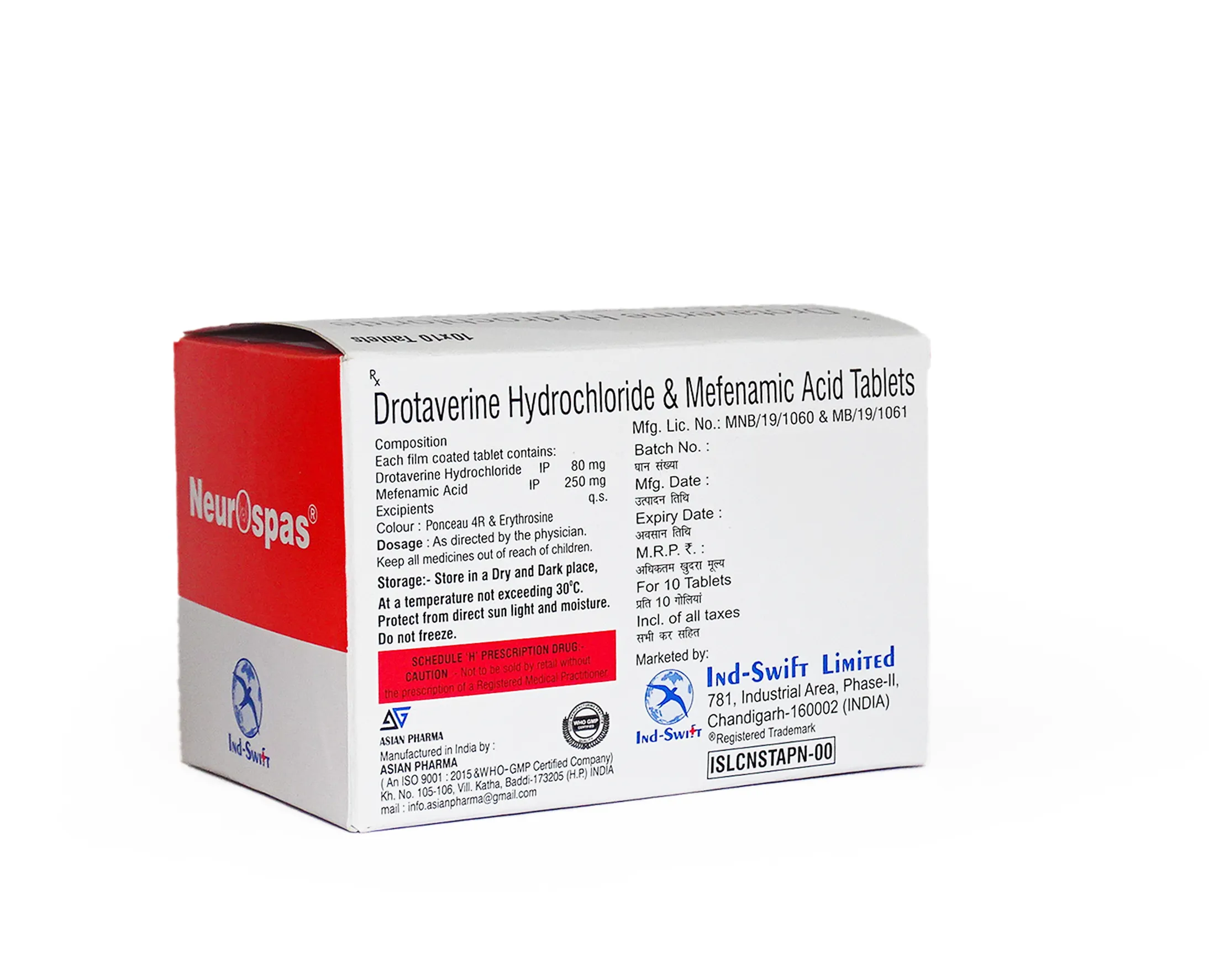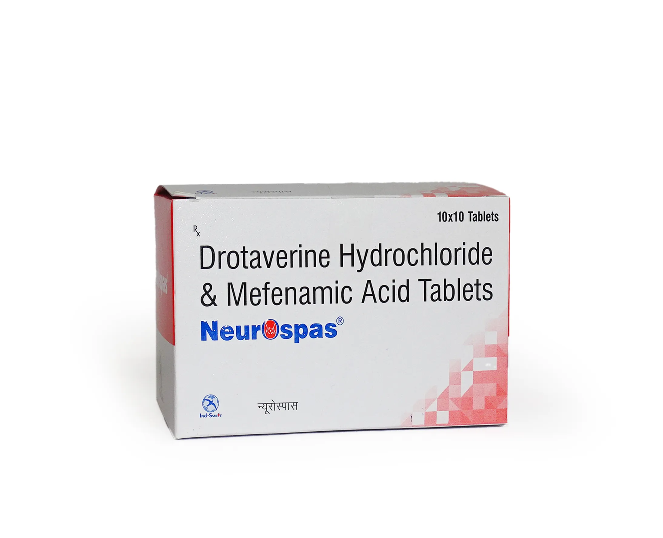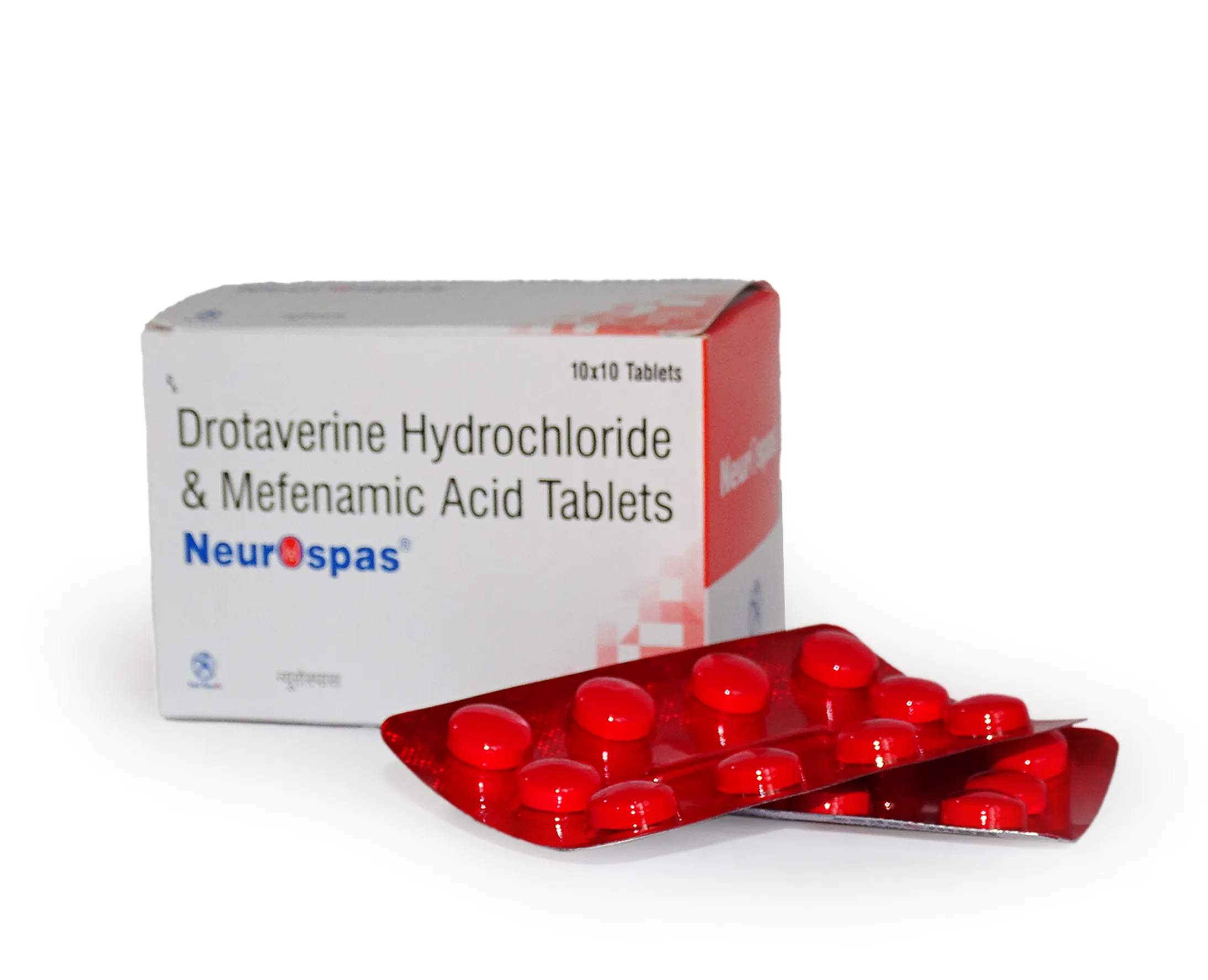 Drotaverine and Mefenamic Acid, which relieves abdominal pain and cramps. Drotaverine is an anti-spasmodic medicine which relieves contractions (spasms) associated with smooth muscles in the abdomen. Mefenamic Acid is a non-steroidal anti-inflammatory drug (NSAID).